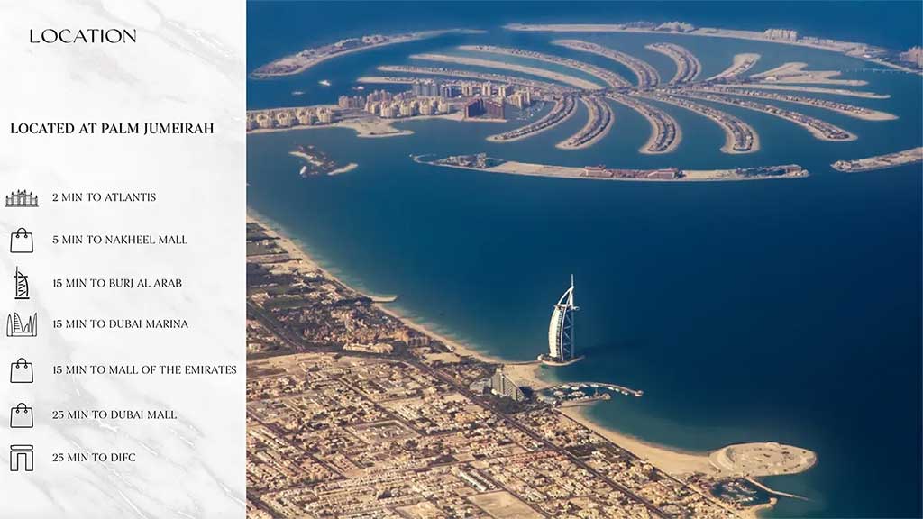 Positioned at the gateway to the world’s most iconic island, Palm Jumeirah offers a premier beachfront lifestyle where private white-sand shores meet Michelin-starred dining and high-end retail. Located on the trunk for effortless entry and exit, it sits just 10 minutes from Dubai Marina and 20 minutes from Downtown Dubai. This elite address perfectly balances the tranquility of a secluded island sanctuary with rapid connectivity to the city’s primary social and business hubs.